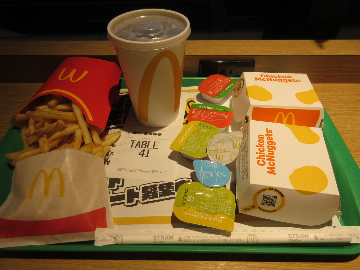 かなり歩き疲れたのでいつものマクドナルドで休憩です。おなかも空いたのでポテナゲ大とクーポン無料ポテトSを美味しく頂きました。何故かポテトSは揚げたてのアツアツでしたがポテトLは少し冷たくなってました。Σ( ̄ロ ̄lll)ガーン