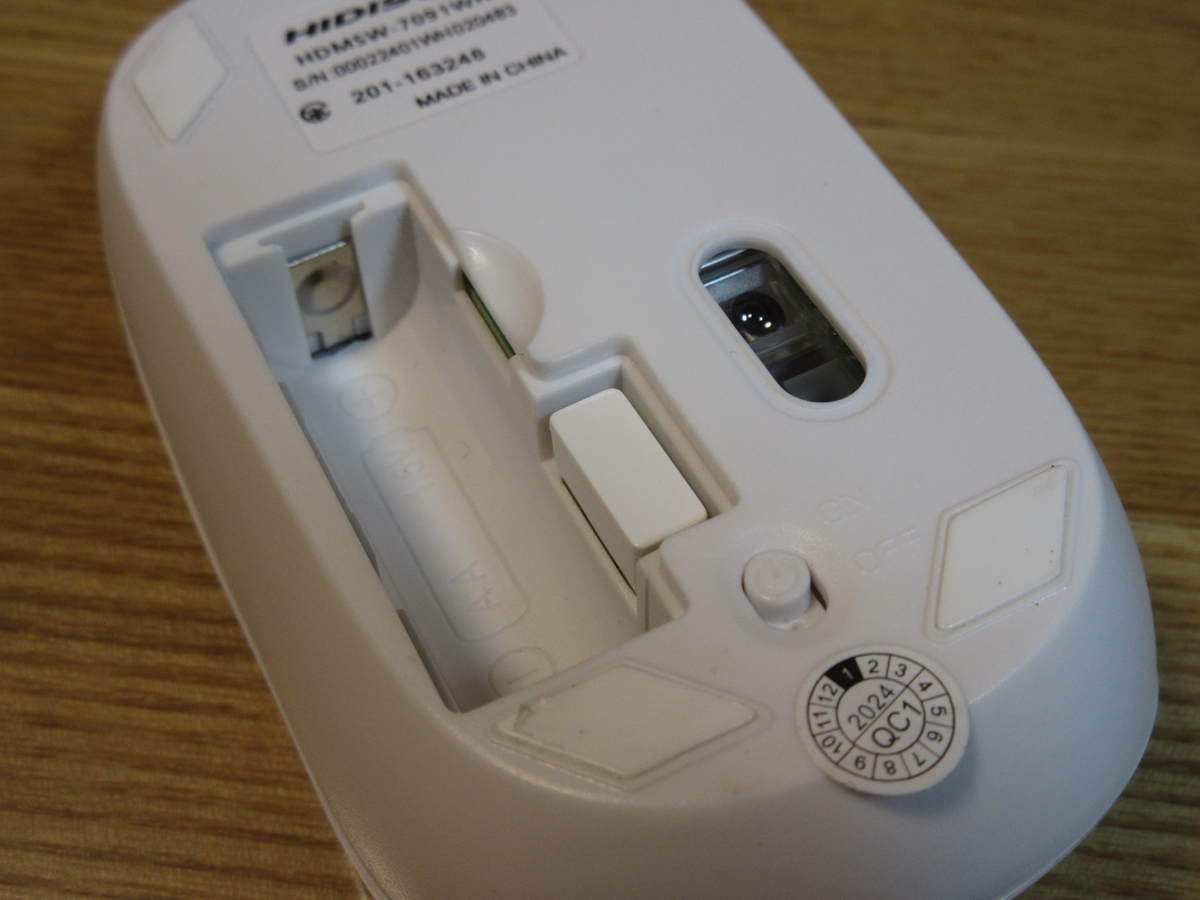 早速動作チェックです。PCにマウス接続後、裏のLEDは光りました。