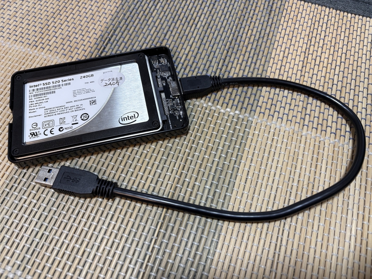 内蔵ストレージの「SATA M.2 SSD」が無いため、今回は外付けのストレージからOS起動し動作確認しました(今度アキバでSATA M.2 SSD探します)