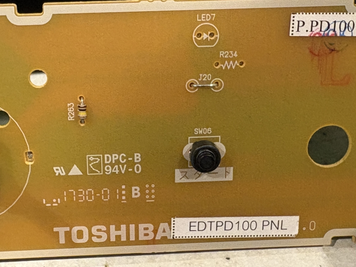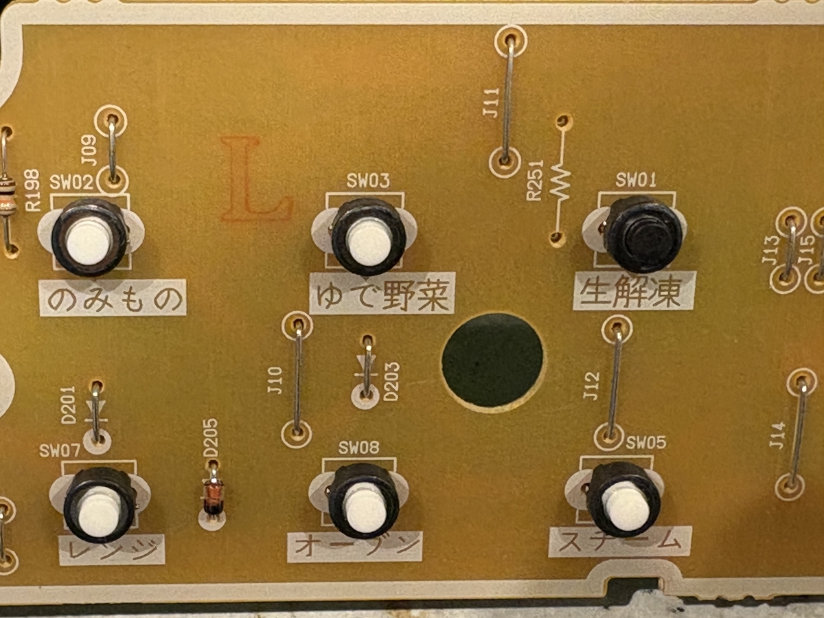 同様に以前交換した「牛乳ボタン」(基板上では生解凍ボタン)も交換しました。